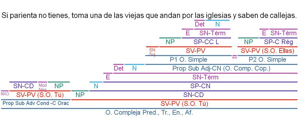 - Lo que acompaña al verbo es el CD. Dentro de el tenemos una oración compuesta copulativa que es una oración subordinada adjetiva en función de CN de «viejas». Esta oración compuesta está formada por dos oraciones simples, sencillas de analizar.