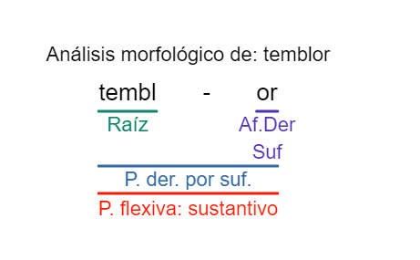 Indique a qué categoría gramatical, o clase de palabras, pertenece temblor, analice su estructura morfológica y señale a qué proceso de formación de palabras responde.
