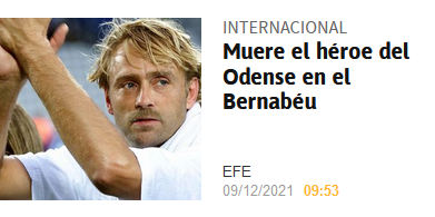 En una segunda visión, que en este caso es la correcta, se habla un jugador del Odense que en 1994 eliminó de la Copa de la UEFA al Real Madrid convirtiéndose en un héroe y que ha fallecido en la actualidad. En este caso, «en el Bernabéu» es un Complemento del Nombre «héroe».
