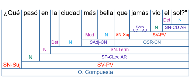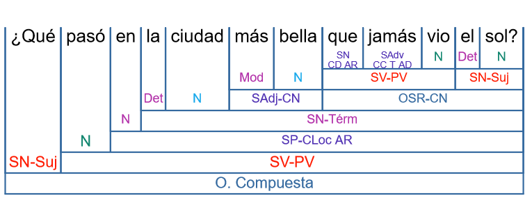 En la primera interpretación suponemos que la banda quiere decir que el Sol no ha visto jamás una ciudad más bella que San Sebastián. Dentro de la subordinada relativa que complementa a «ciudad», el «que» relativo funciona como complemento directo y «el sol» como sujeto -> El sol jamás vio ciudad más bella.