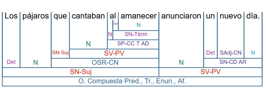 • Tenemos una subordinada relativa complementando a «pájaros». El «que» dentro de ella funciona como Sujeto.