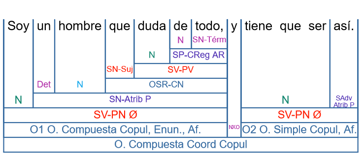 - En 01 tenemos una subordinada relativa complementando a «hombre».