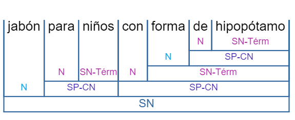 En la primera interpretación, y que sería la correcta por semántica, el jabón tiene forma de hipopótamo y se analizaría así.