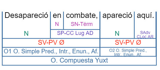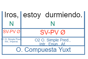 - Es una oración compuesta, yuxtapuesta formada por dos oraciones simples, predicativas e intransitivas.