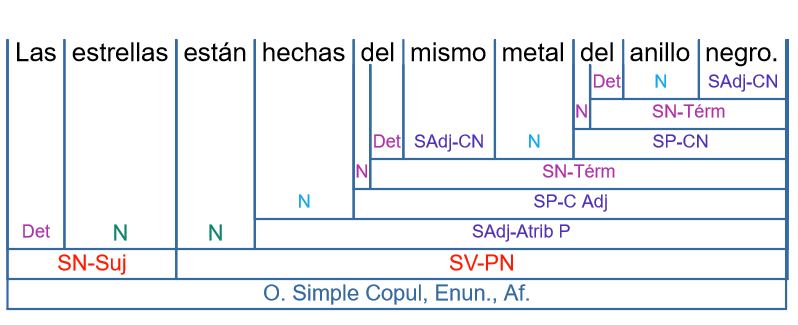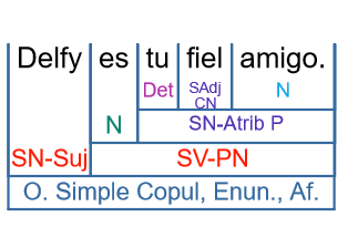 - Es una oración simple, copulativa y enunciativa.