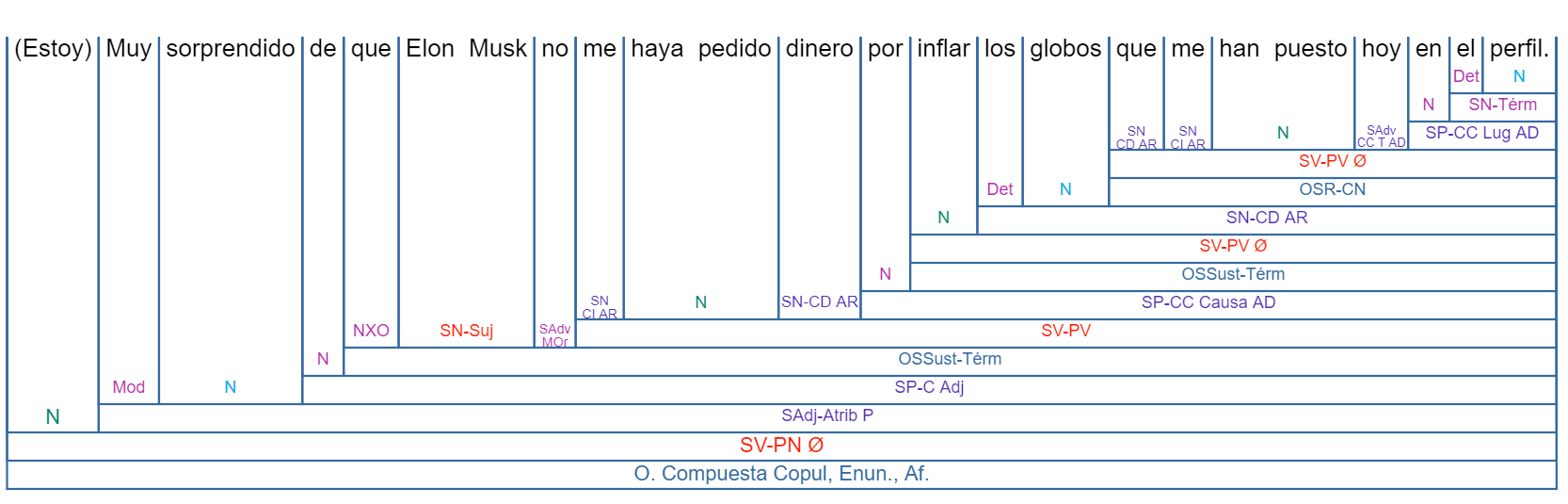 - Es una oración compuesta, predicativa y transitiva.