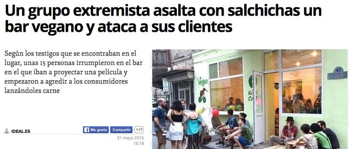 2. Un grupo extremista asalta con salchichas un bar vegano y ataca a sus clientes.